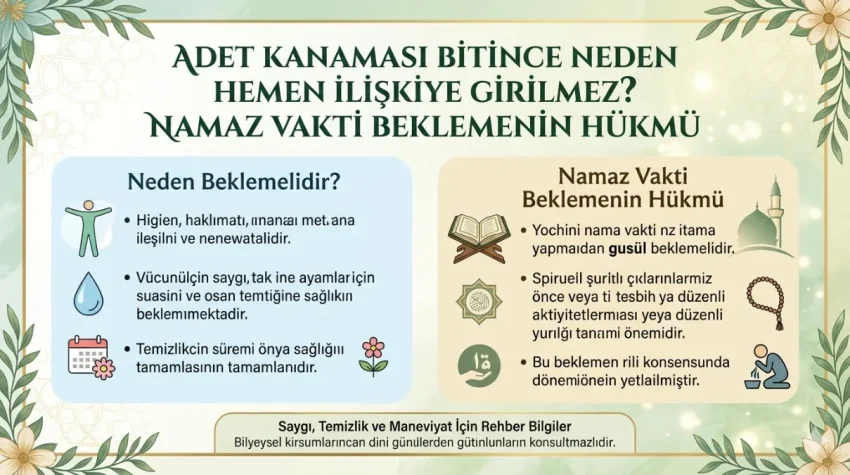 Bir namaz vakti kadar beklemesi, hükmen temiz sayılması ve ibadet ile aile hayatına uygun şekilde devam edebilmesi için İslam’ın koyduğu bir ölçüdür.