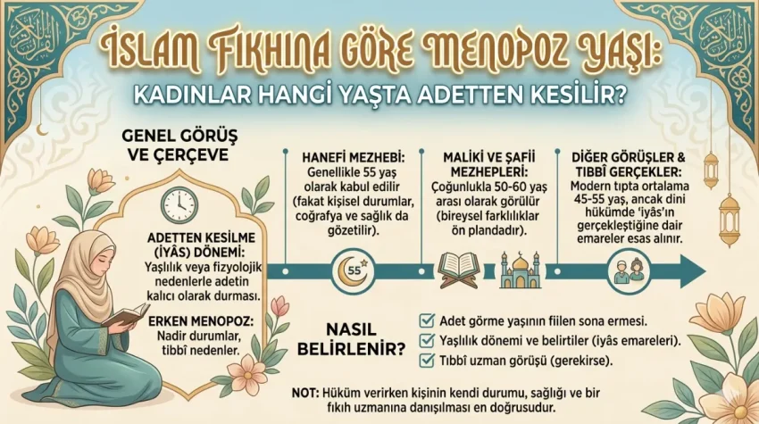 - Fıkıh âlimlerine göre kadınlar genellikle kırk beş ile elli beş yaşları arasında adetten kesilirler.
