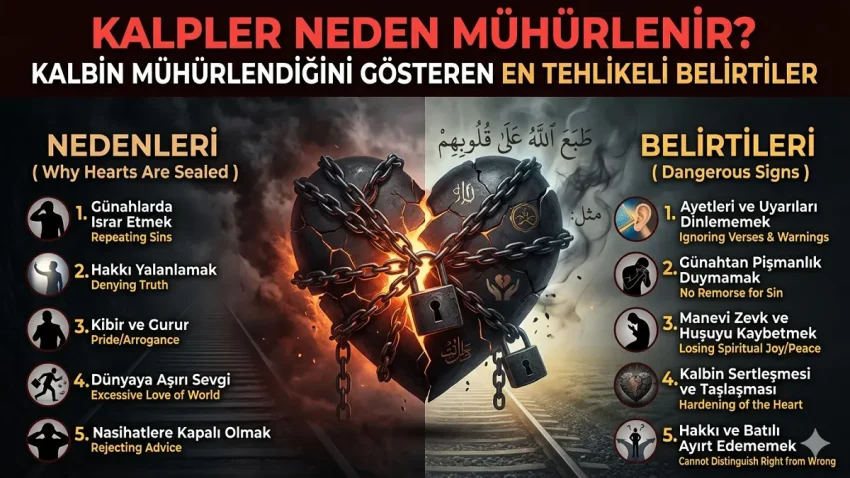 - Allah’ın ayetlerini inkâr etmek, günahı alışkanlık haline getirmek ve hakikate karşı inatla direnmek kalbin mühürlenmesine sebep olabilir.