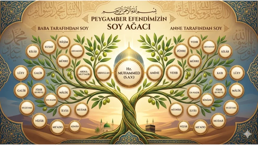 Peygamber Efendimiz Hz. Muhammed’in soyu, hem baba hem de anne tarafından faziletli ve şerefli bir nesle dayanır. Siyer ve tabakat kaynaklarında yer alan bu silsile, Allah Resûlü’nün temiz bir nesep üzerinden dünyaya geldiğini göstermesi bakımından büyük önem taşır. Müslümanlar için bu soy zinciri, yalnızca tarihî bir bilgi değil; aynı zamanda Resûlullah’a duyulan sevgi, hürmet ve bağlılığın da bir yansımasıdır.