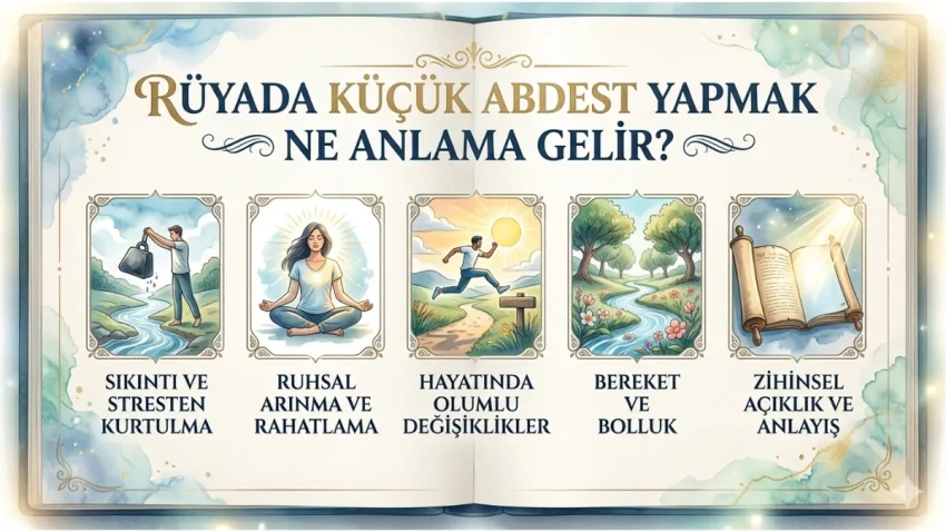 Rüyada küçük abdest yaptığını görmek, İslami rüya tabirlerinde kişinin sıkıntılarından kurtulacağına, mal sahibi ise zekatını vererek sorumluluklarını yerine getireceğine işaret eder. Bu rüya aynı zamanda ihtiyaçların meşru yollarla karşılanacağını ve kişinin hayatında manevi bir rahatlama yaşayacağını gösterir.